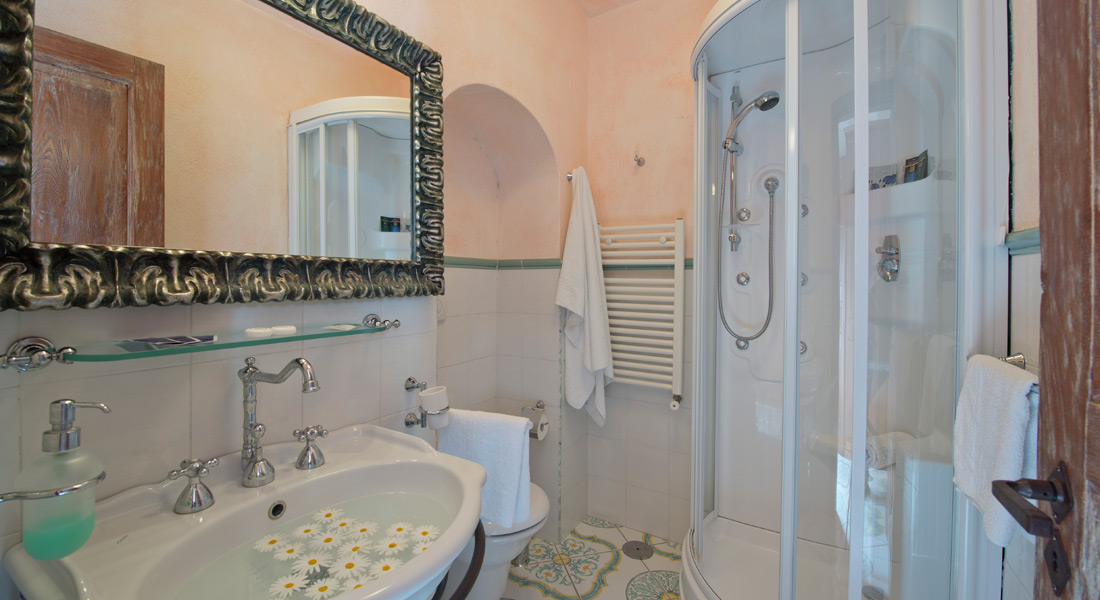 L’arredamento in stile classico si combina elegantemente con le maioliche artigianali. La camera è dotata di bagno privato con doccia idromassaggio, set asciugamani e asciugacapelli, Tv satellitare, interfono, aria climatizzata e cassaforte. Servizio frigo bar e internet Wi-Fi in camera.